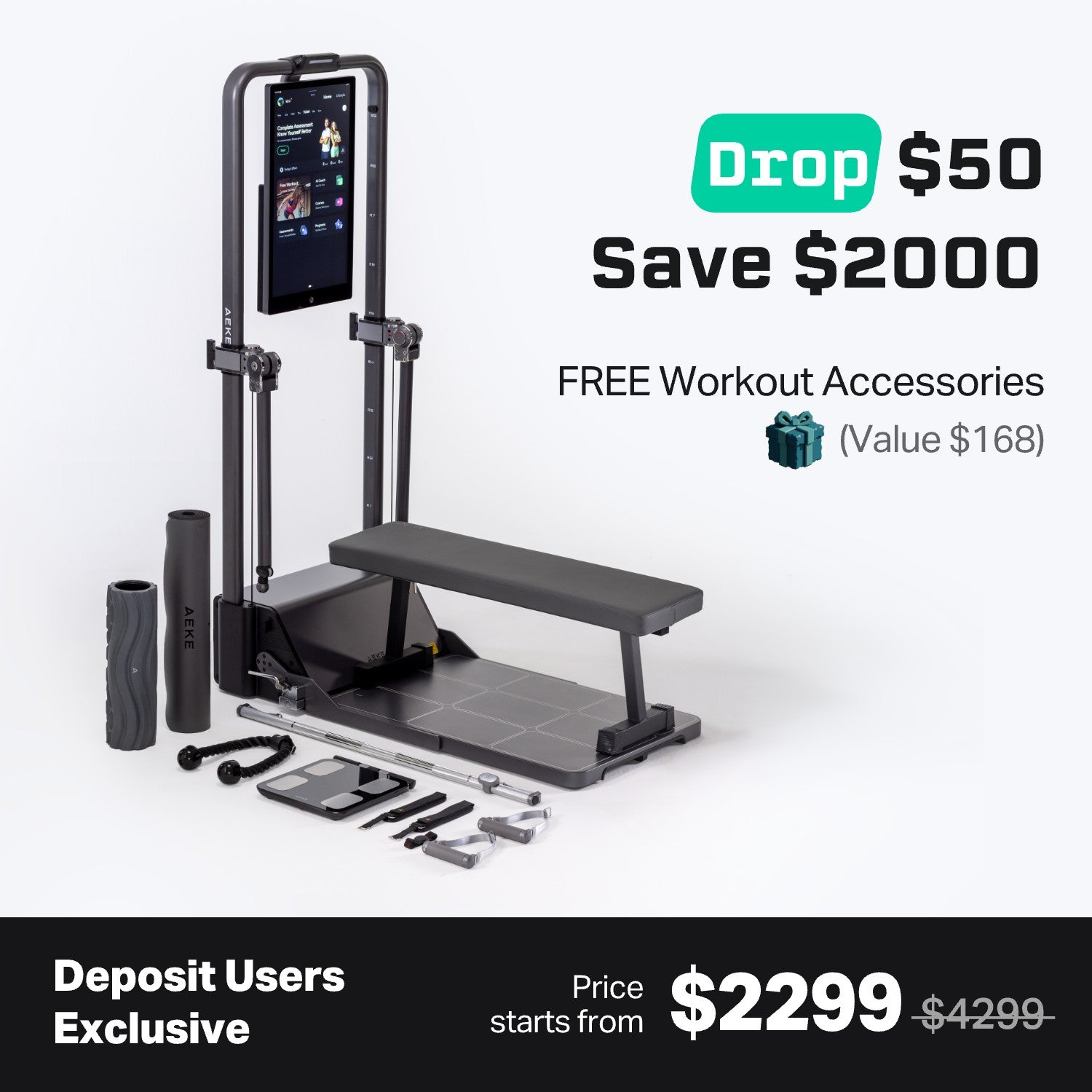 AEKE is designed to fit into your life and your space, supporting your goals without adding complexity. With intelligent AI and responsive sensors, it personalizes every workout in real time, tracking your progress, adjusting your resistance, and helping you stay on track when motivation wavers. It gives you structure when you need it, freedom when you want it, and insight at every step, so you never have to guess what comes next. AEKE isn't just smarter. It's simpler. No subscription. No distractions. Every moment of effort counts - and every number moves you forward.