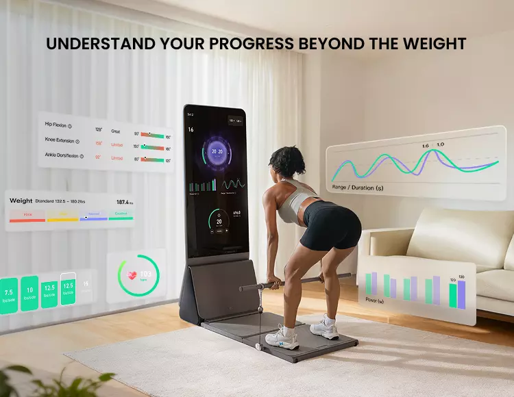 Führen Sie klassische Verbundübungen ohne sperrige Gewichtsscheiben oder Gestelle durch, mit intelligenter digitaler Gewichtsrückmeldung.