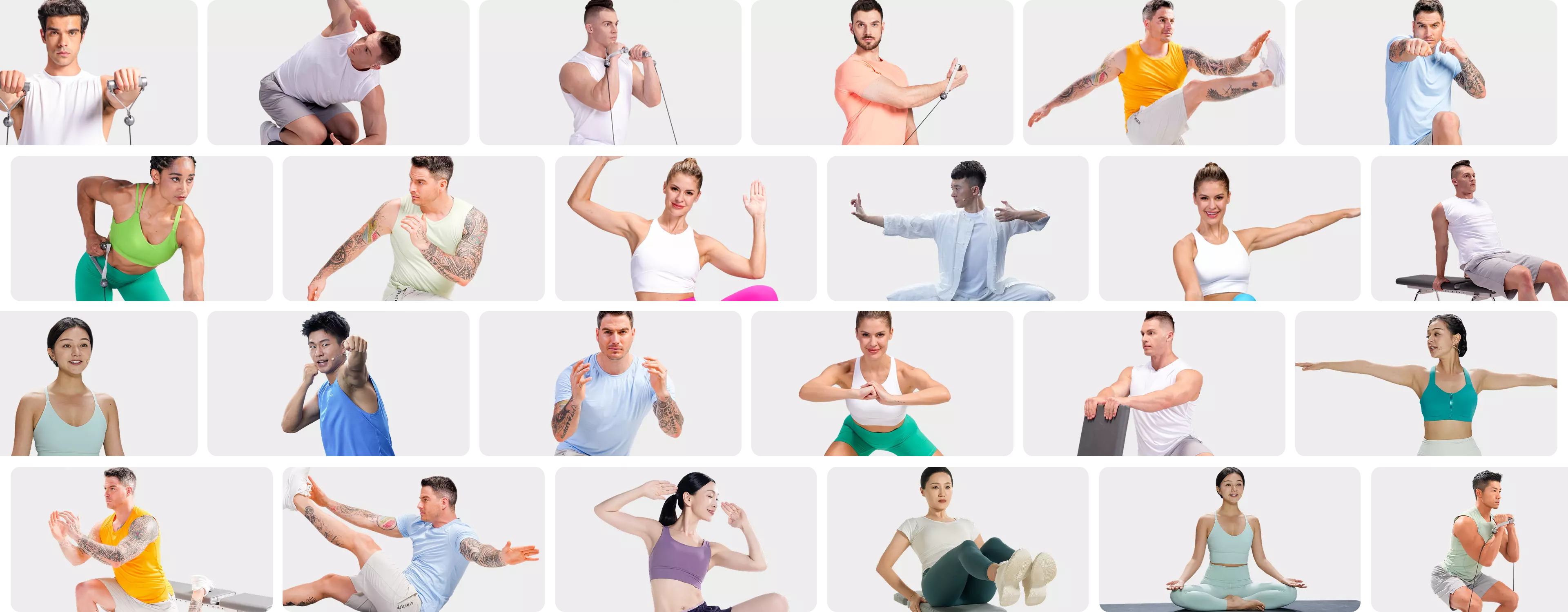 Lebenslang kostenlos · Über 200 Experten-Workouts · Über 300 Bewegungen