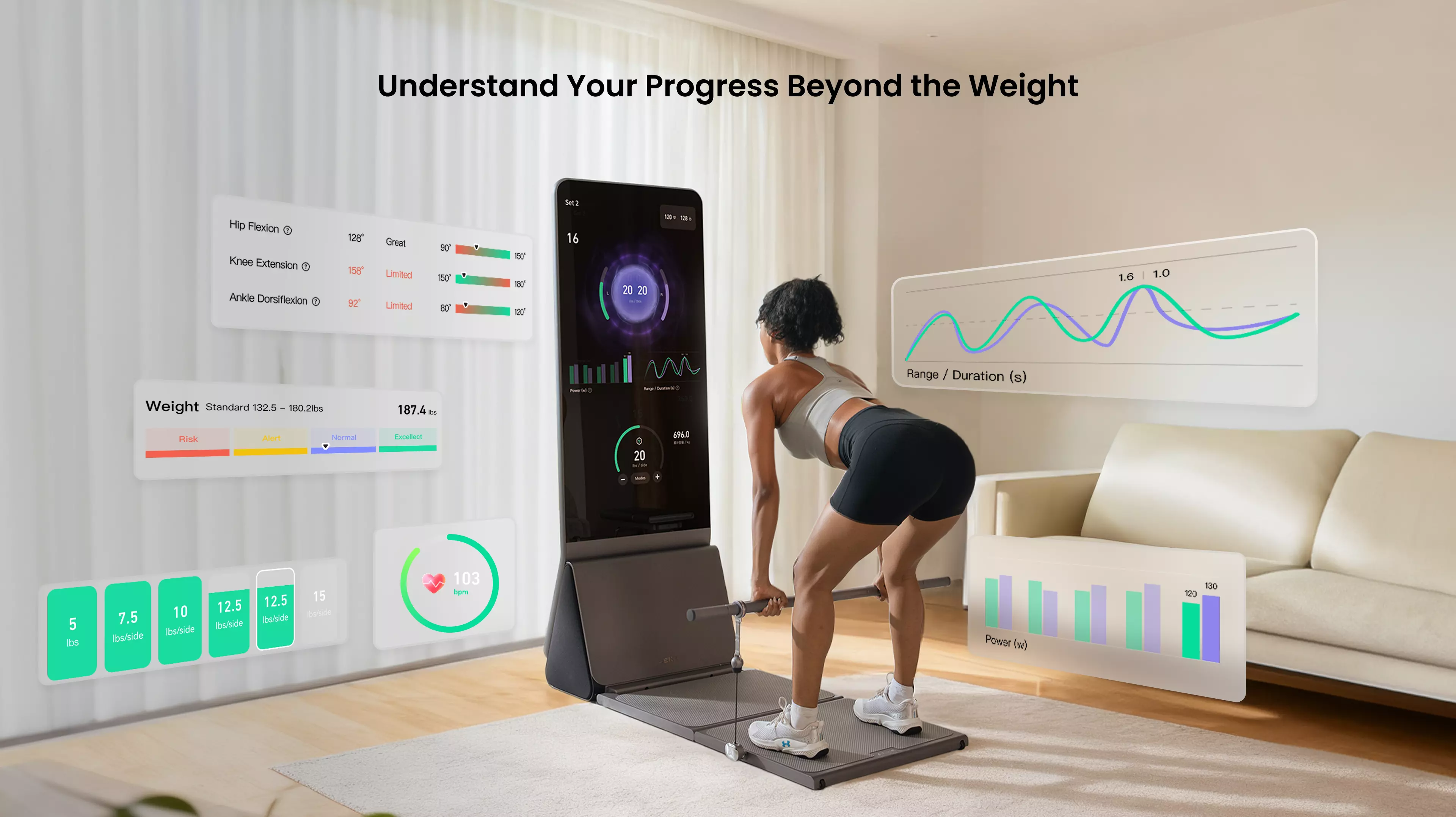 Führen Sie klassische Verbundübungen ohne sperrige Gewichtsscheiben oder Gestelle durch, mit intelligenter digitaler Gewichtsrückmeldung.
